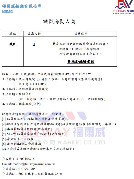 電子郵件: marine@fullwaymarine.com.tw