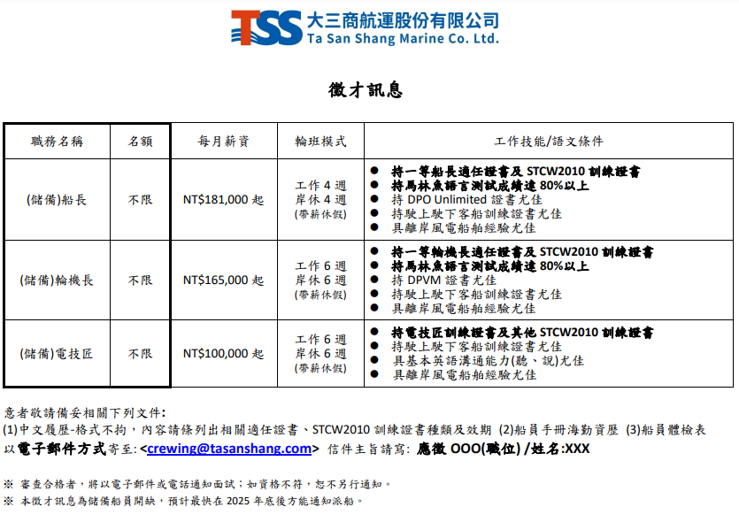 最新消息總覽>公告內容 發佈日期:2025-10-21 17:17:16   發佈單位:大三商航運股份有限公司